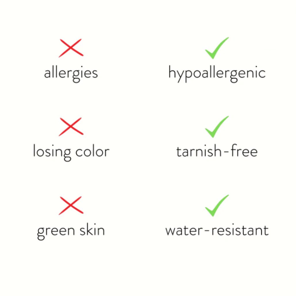 Fabriqué en acier inoxydable étanche, vous n'aurez plus jamais à vous soucier des bijoux décolorés ou ternis.